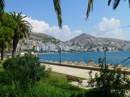 Promenáda na pláži v krásném městě Saranda na jihu Albánie
